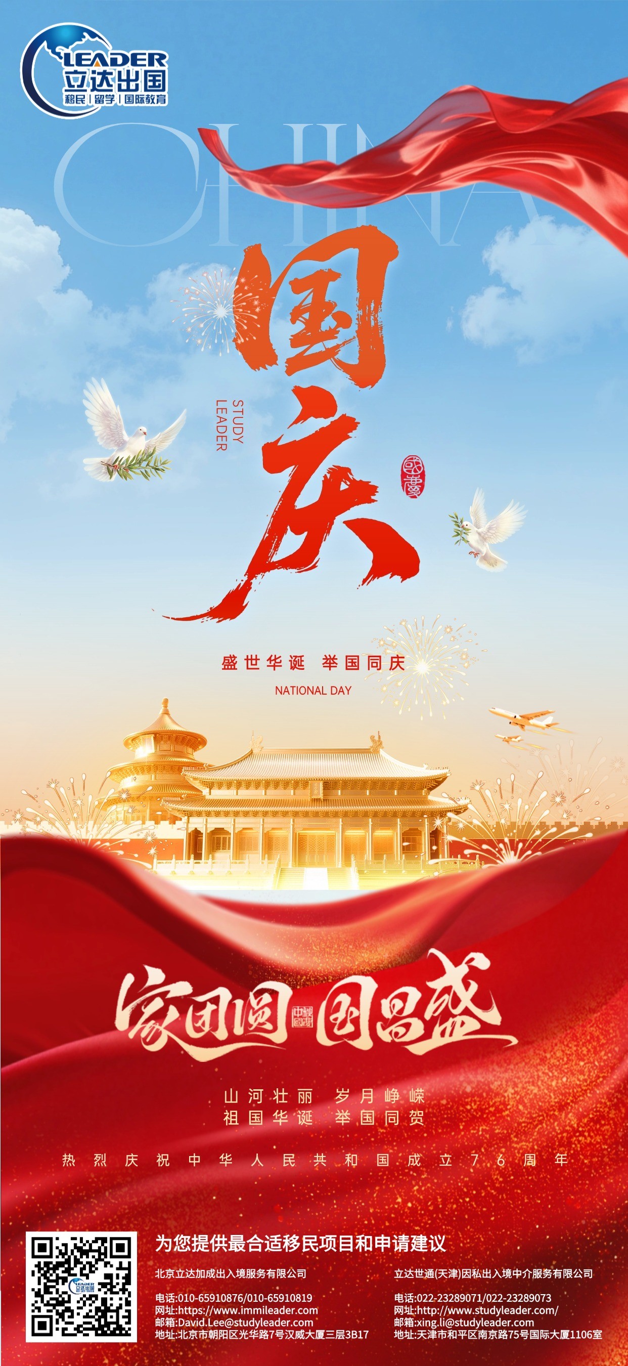 在此双节同庆时刻,立达出国谨以最诚挚的心意,祝您国庆&中秋快乐!愿您与家人共享一个美满的假期,也祝福我们伟大的祖国繁荣昌盛,国泰民安!