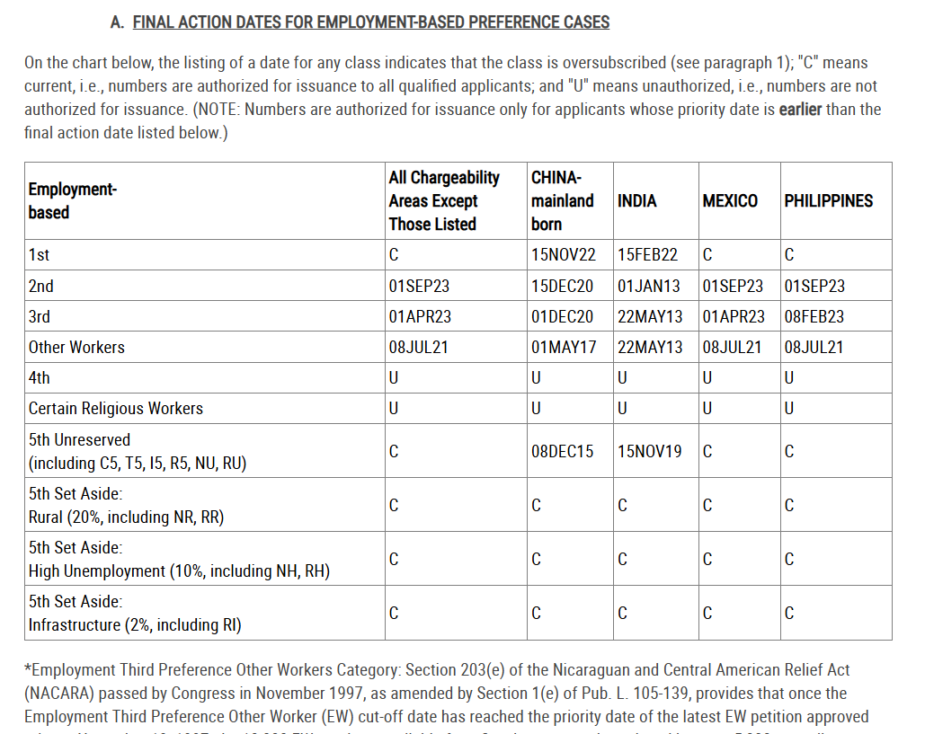 需要向大家说明一下,表A所体现的是具有签证名额的排期情况。也就是说,当您的排期日期早于表A上所显示的日期时,这就表明您将获得一个绿卡名额。