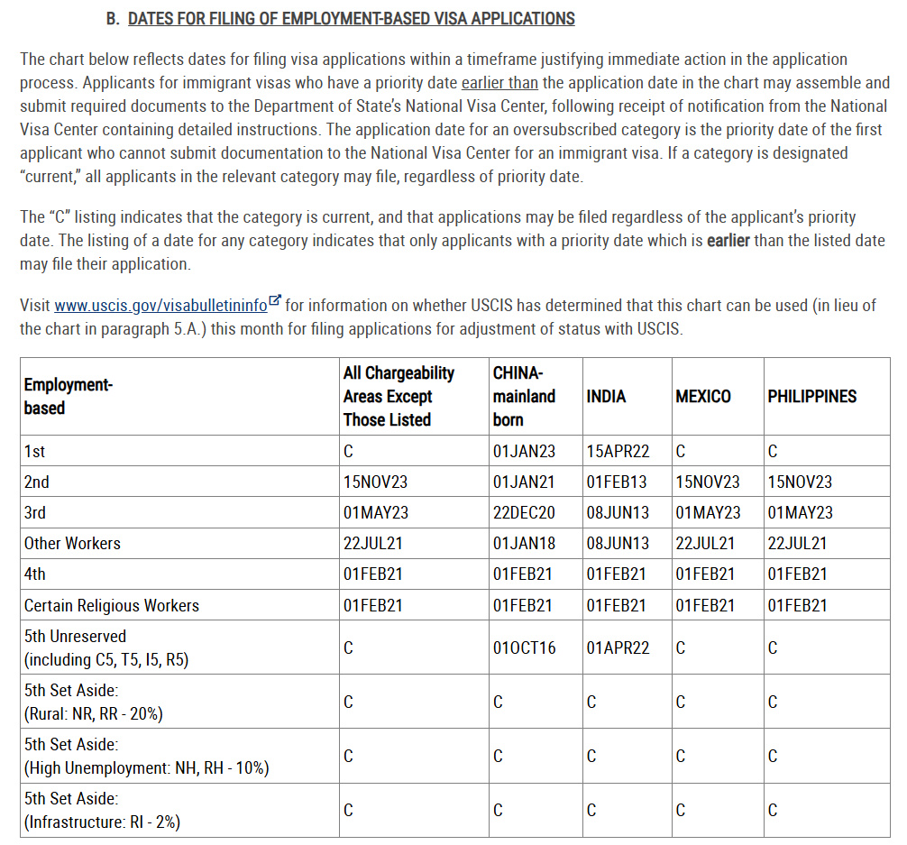 而表B代表的是递件排期,它主要是适用于那些希望在美国境内调整身份的申请人。对于不在美国境内的申请人而言,需要按照领馆处理流程来操作,这种情况下就应当参考表A。