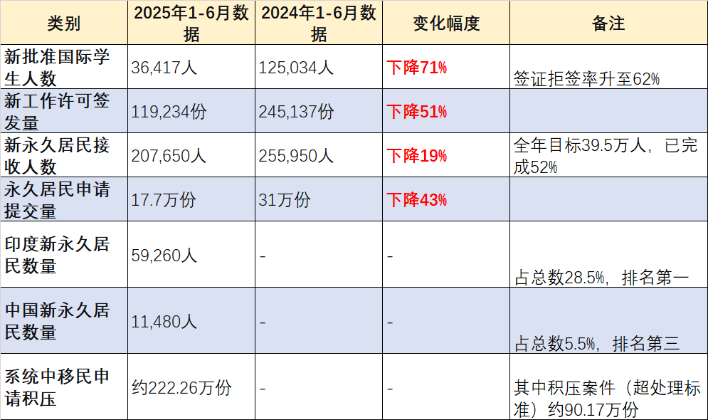 加拿大2025年上半年的移民数据确实出现了显著变化,整体移民规模和留学生数量都有所下降。这主要是加拿大政府为缓解国内住房和社会基础设施压力,对移民和临时居民政策进行了一系列调整的结果。