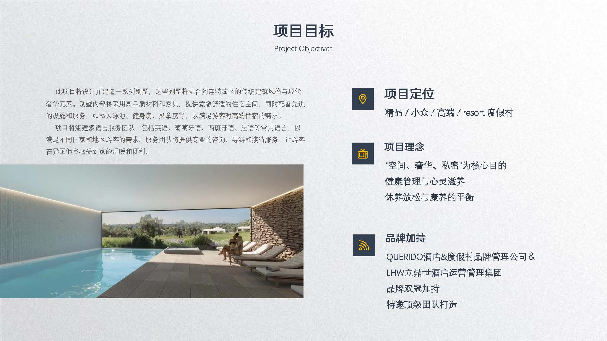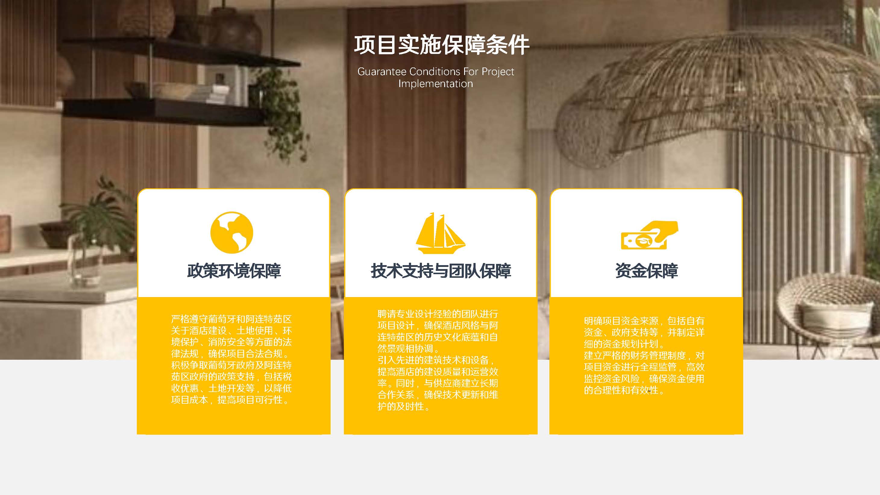 项目依托精准市场研判,实现资源最优配置;通过专业设计、建设、运营及全链条支持体系,构建一体化解决方案,并以完善的风险管控机制护航。其高可行性及投资潜力,使其有望成为阿连茹旅游新地标,激活区域经济增长极,同时满足全球高端客群对极致生活美学的向往。