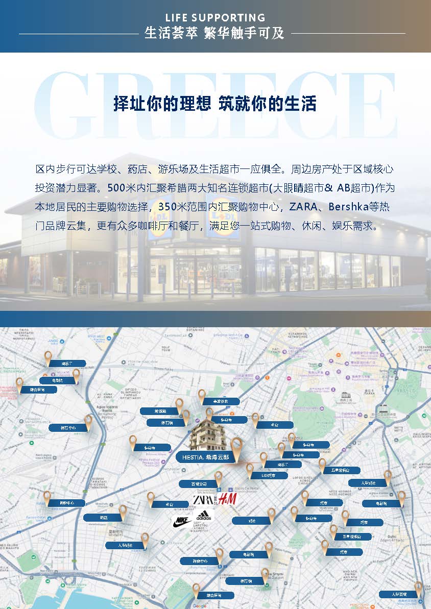 - 步行300米到达Sklavenitis(ΣΚΛΑΒΕΝΙΤΗΣ,俗称大眼睛超市)