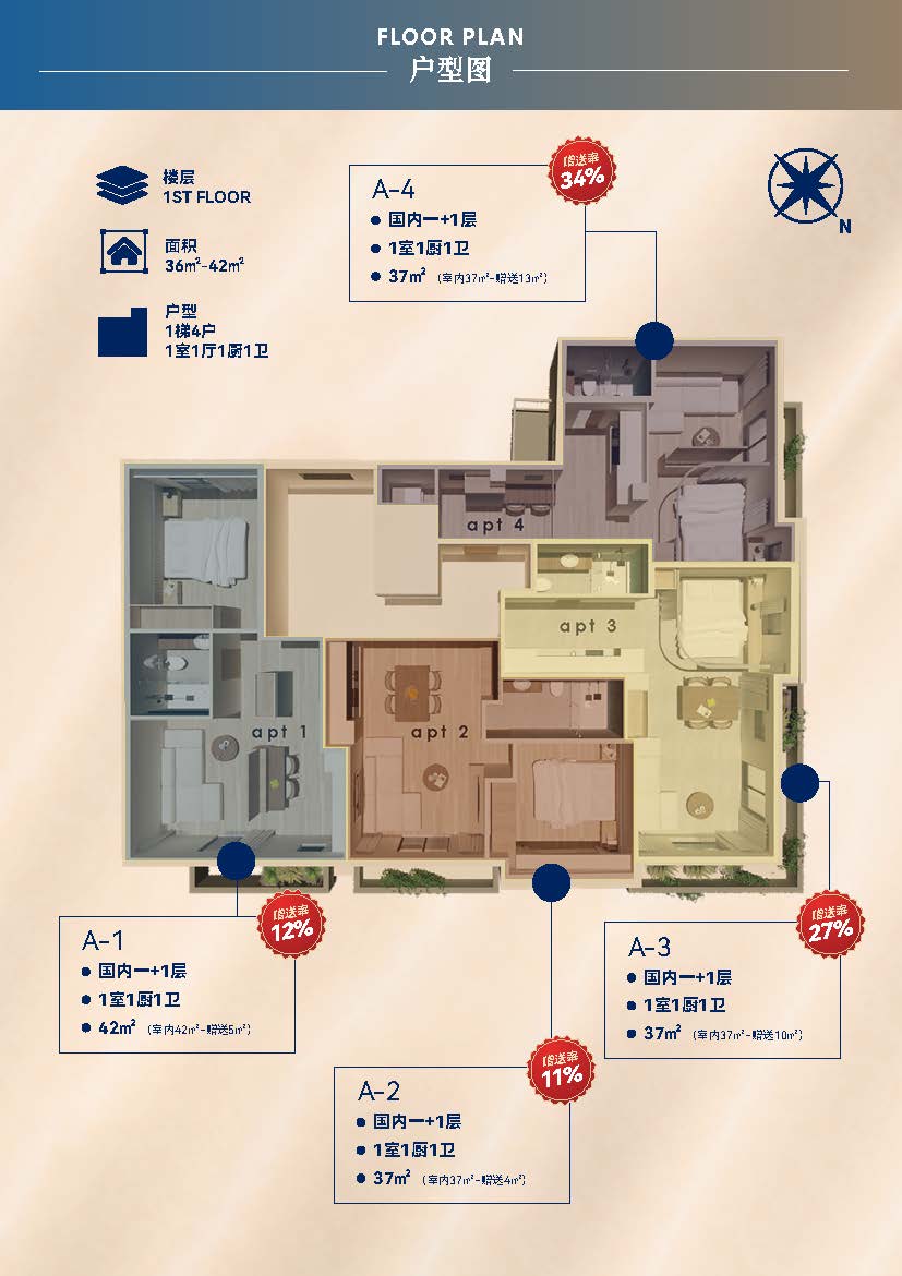 💶租金回报率:每年3%,包租3年,一次性抵扣房款