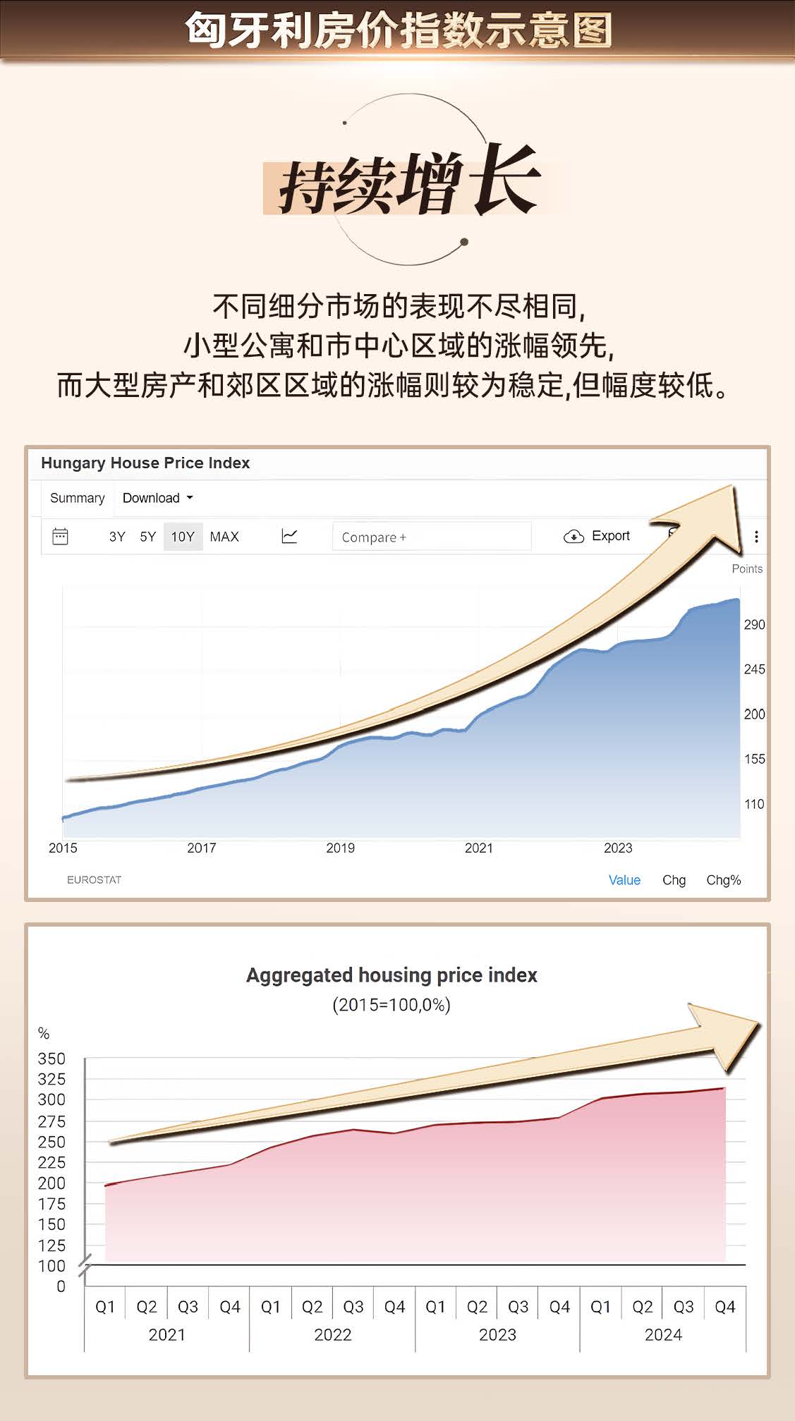 布达佩斯的累计价格涨幅超过60%,使其成为欧洲涨幅最快的房地产市场之一。这种持续增长反映了经济发展、欧盟成员国身份带来的益处以及国际社会对匈牙利投资潜力日益增长的认可。