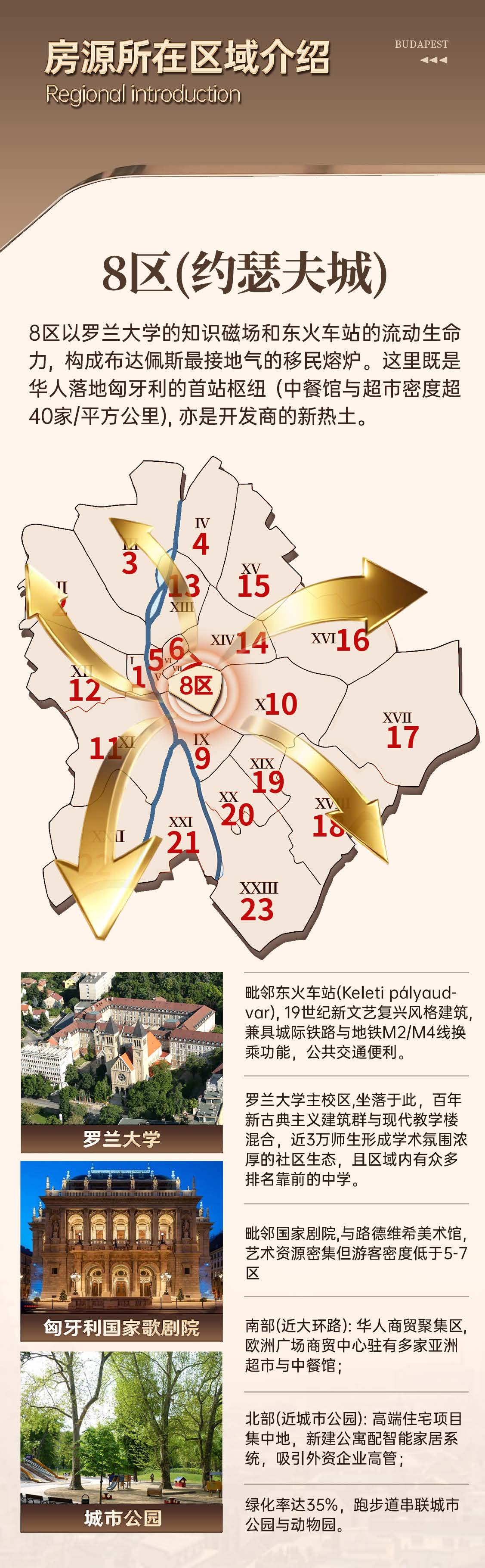 8区以罗兰大学的知识磁场和东火车站的流动生命力,构成布达佩斯最接地气的移民熔炉。这里既是华人落地匈牙利的首站枢纽(中餐馆与超市密度超40家/平方公里),亦是开发商的新热土。