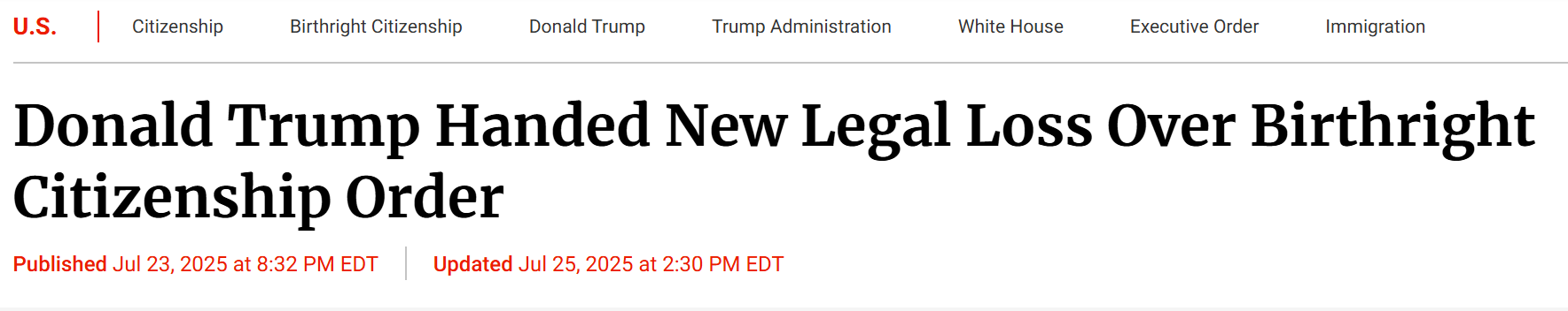 此前,第九巡回上诉法院(7月23日)也以2:1裁定该行政令违宪,并支持全国性禁令,认为第十四修正案明确保障出生公民权。