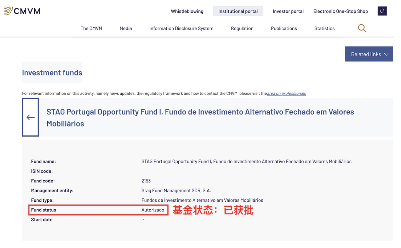 STAG葡萄牙基金官方查询截图