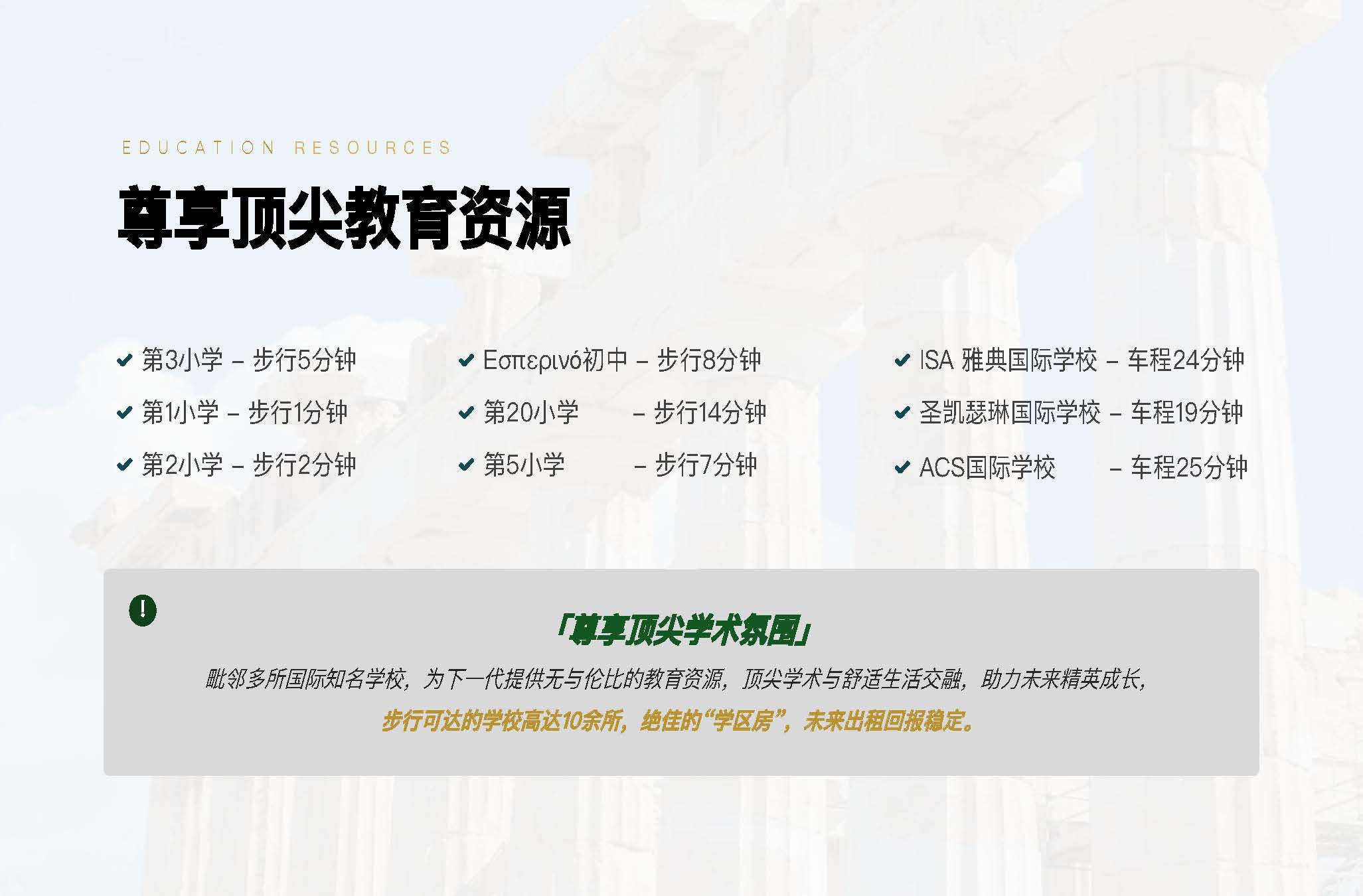 3️⃣顶尖教育资源:聚集雅典最好的国际学校(ISA、圣凯瑟琳等),周边公立学校步行可达
