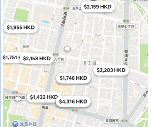 旅游刚需:浅草寺周边民宿1K房型日均价1.5万-4万日元,旺季溢价300%(如樱花季)。