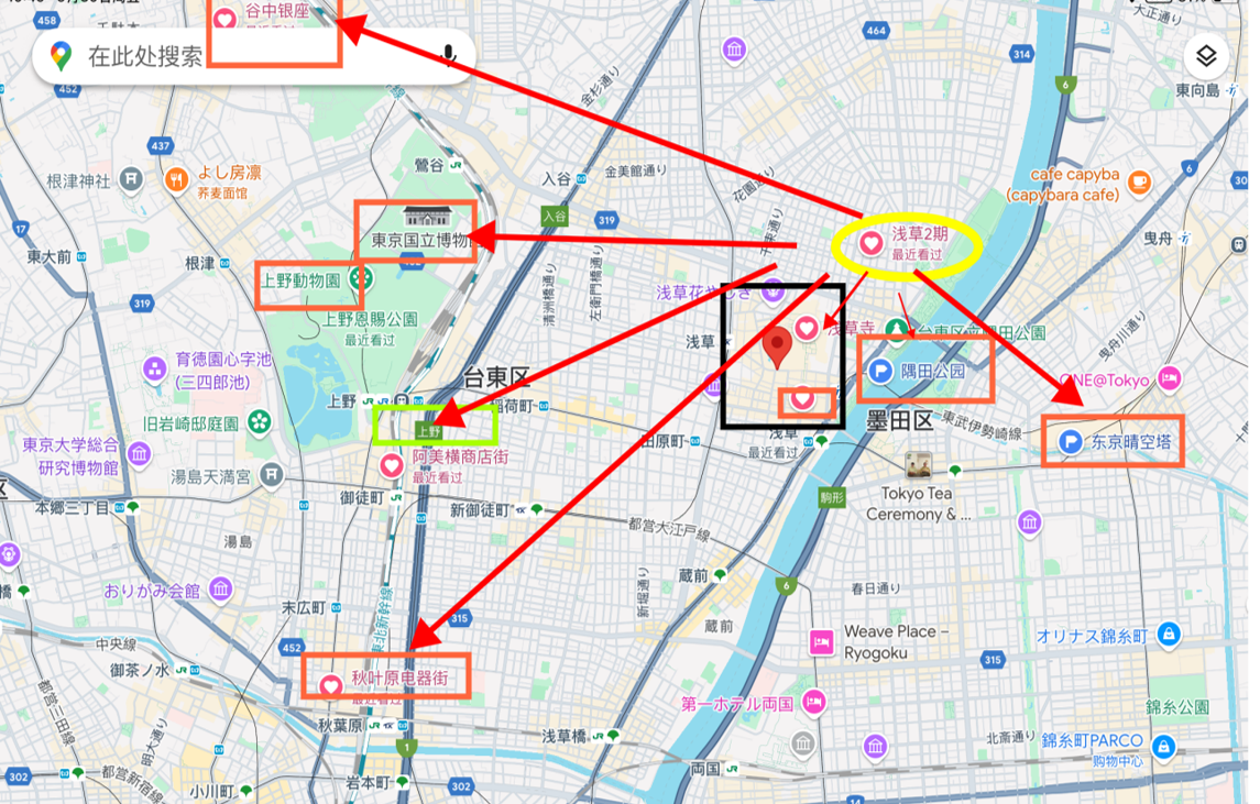 (2)隅田公园→ 200m步行1分钟樱花季吸引日本人以及海外游客在河畔赏樱,隅田花火大会,基本每年都吸引上百万人涌入,25年初步时间为7月26日。