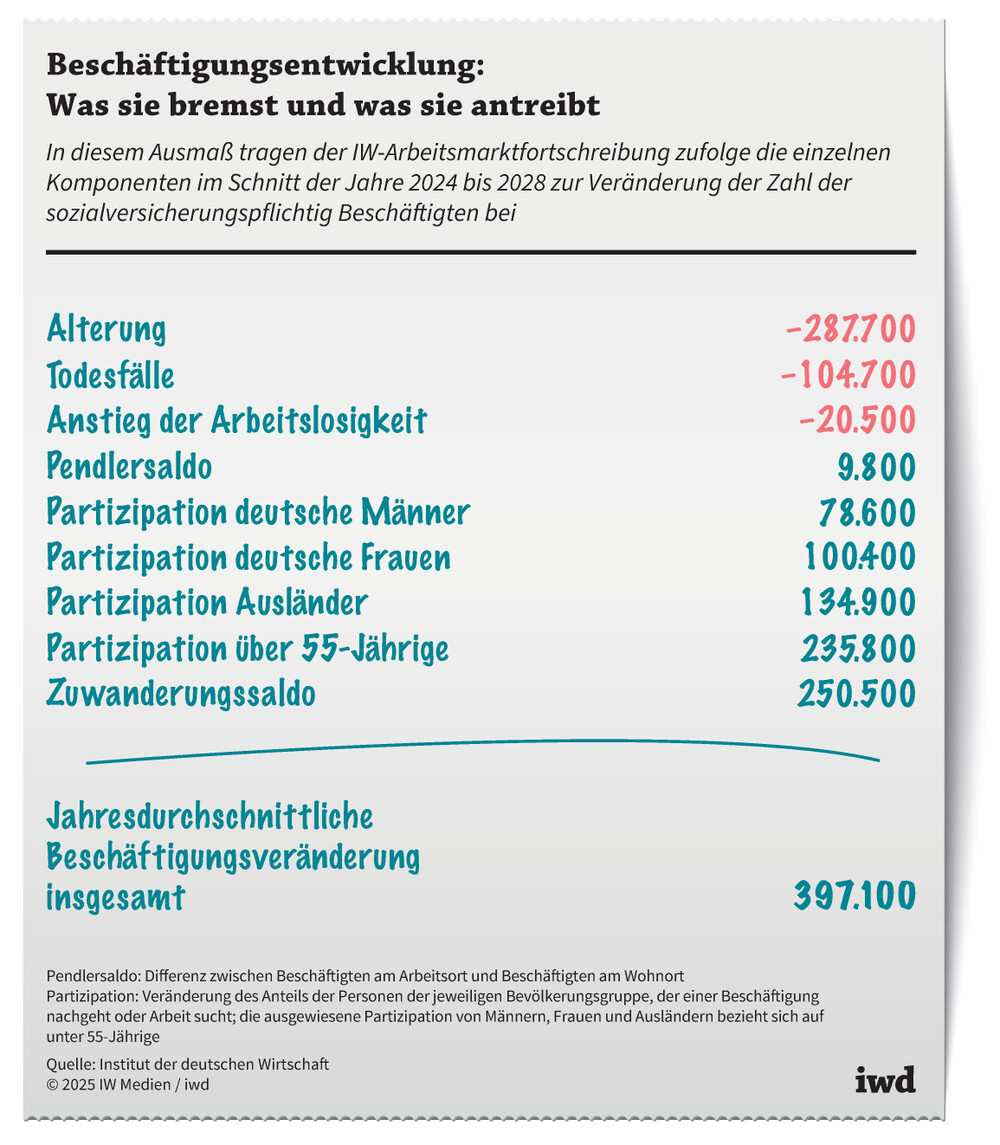 根据IW的预测,2024年到2028年,德国缴社保的雇员人数平均每年大概会增加39.7万人,但技术工人的缺口会越来越大。